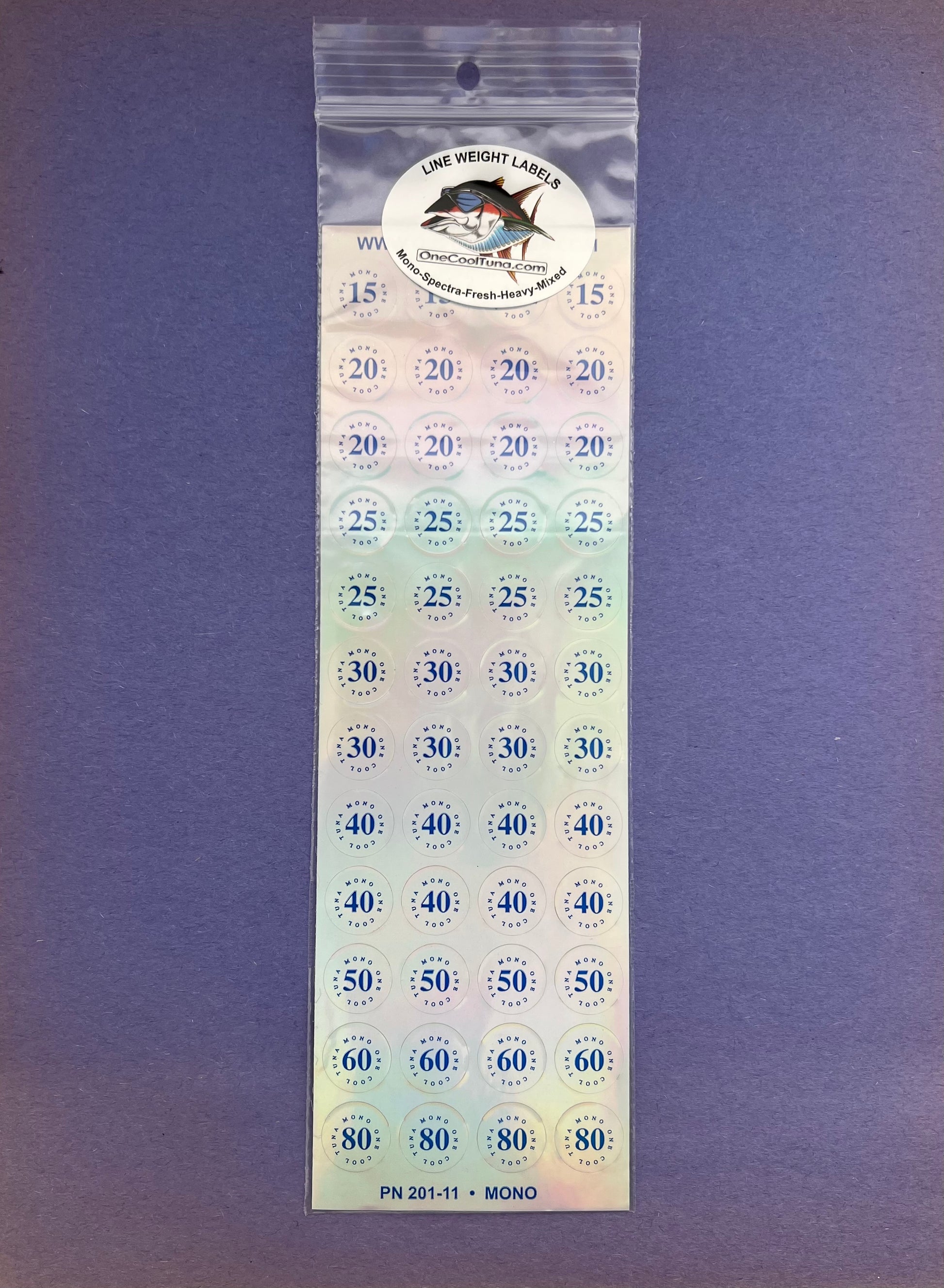 Highly visual and durable UV coated. Select from Mono – Braid – Freshwater – Heavy – and a Mix pack that has all 4 types on one sheet. Just added – Super Heavy – 100# to 600# for the Big Boys and leader. They will stay on as long as you want and comes off clean. OneCoolTuna Line labels are the best you can get. The number one "Fishing Line Labels" for over 20 years. Tested and used by the San Diego Sportfishing fleet.
